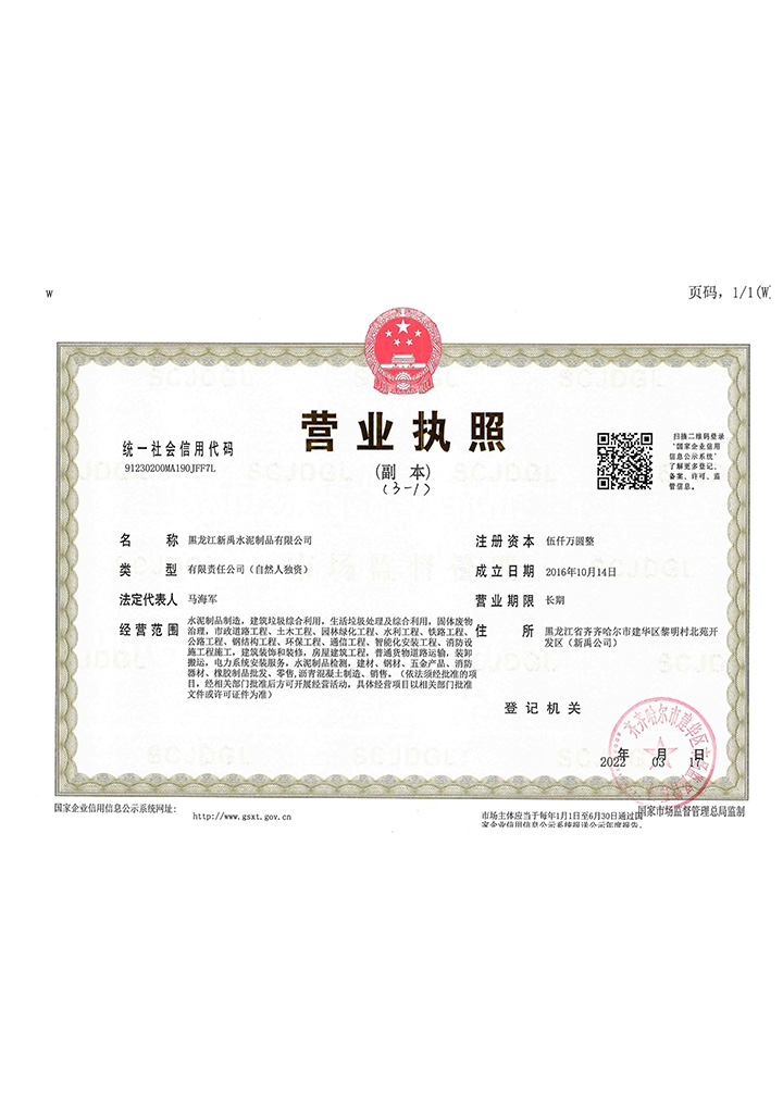 歡迎訪問黑龍江新禹水泥制品有限公司官方網站!